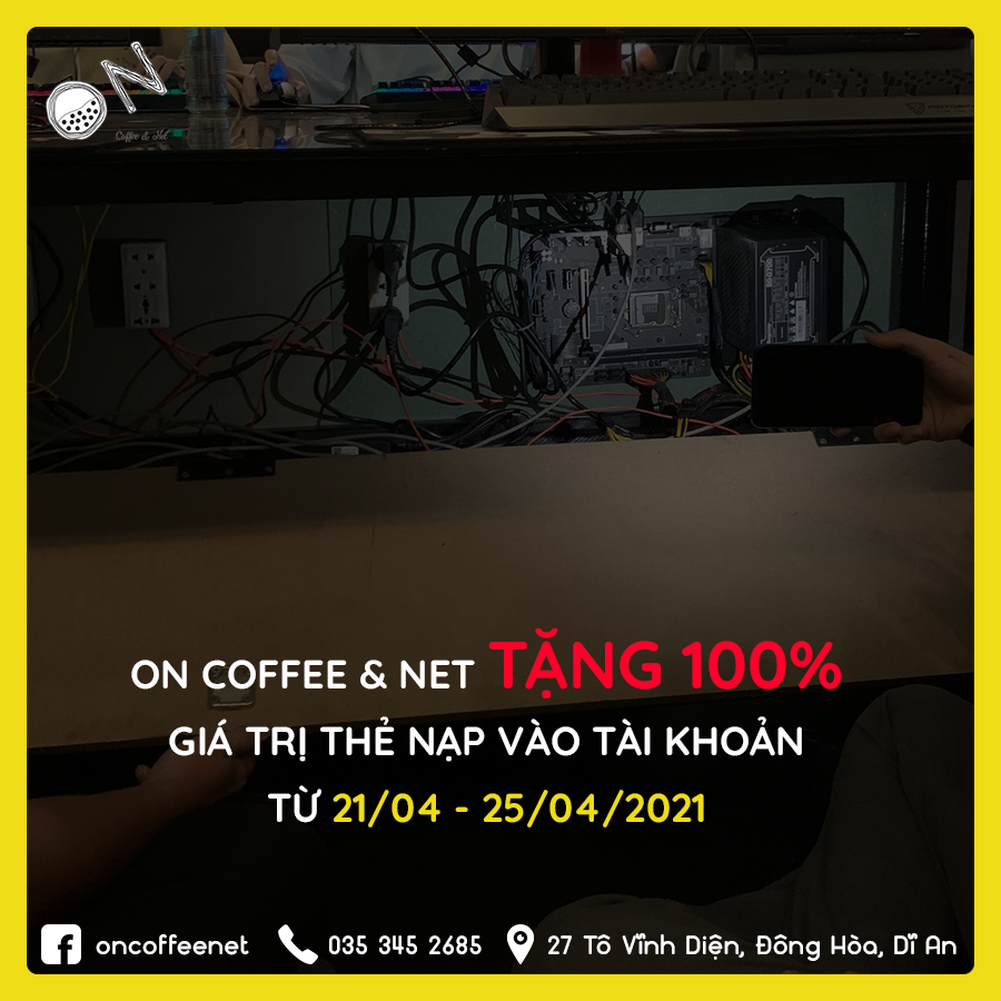 Tặng 100% giá trị thẻ nạp dành cho hội viên của On Coffee & Net từ 21/04 – 25/04/2021.